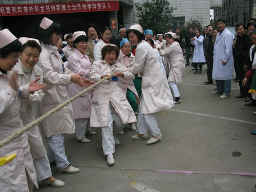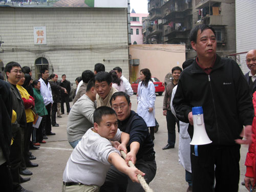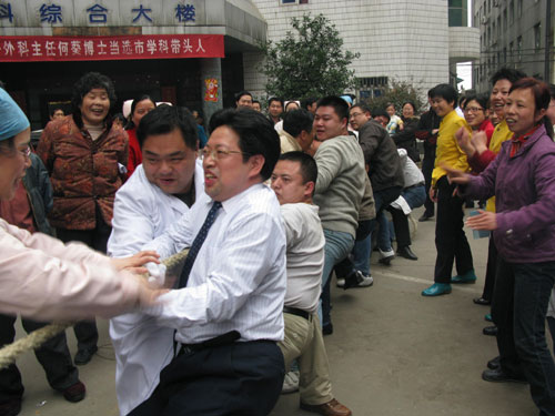 “天使”拔河 健身強(qiáng)體 發(fā)布時(shí)間:2009年3月10日 預(yù)覽:3950次 本報(bào)訊 為了以健康的體魄更好地服務(wù)患者,我院通過(guò)全員健康體檢及舉辦登山、球賽等健身活動(dòng),既提高了醫(yī)務(wù)人員身體素質(zhì),又促進(jìn)了團(tuán)結(jié)協(xié)作精神。圖為3月10日拔河比賽的情景。(鄒建軍攝)