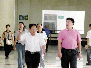 10月8日,市委副書記、市長張自銀(右一)深入市中心醫(yī)院臨床科室,看望了節(jié)日期間工作在臨床一線的醫(yī)務(wù)人員,慰問了住院的患者,并對市中心醫(yī)院的基本建設(shè)和中長期規(guī)劃情況進(jìn)行了調(diào)研。圖為市中心醫(yī)院院長兼黨委書記申錦林(前左一)陪同張自銀市長調(diào)研的情景.