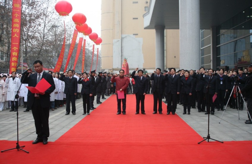 揭幕儀式上,近千名醫(yī)務(wù)人員肅立宣誓并鄭重簽名承諾:“對技術(shù)精益求精,對病人滿腔熱情,對工作極端負責(zé)。”