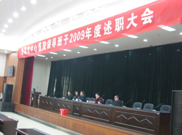 元月18日下午,我院在門診綜合樓21樓多功能會(huì)議廳舉行院領(lǐng)導(dǎo)班子2009年度述職大會(huì)。院黨委書記、院長申錦林代表院領(lǐng)導(dǎo)班子以多媒體形式向全院干部職工述職,全院除值班人員外的干部職工及近20名病人代表參加了大會(huì)。市委組織部、市衛(wèi)生局相關(guān)領(lǐng)導(dǎo)對(duì)醫(yī)院領(lǐng)導(dǎo)班子年度工作進(jìn)行考評(píng),并對(duì)我院在全市首創(chuàng)開放性及多媒體相結(jié)合的述職形式予以充分肯定。