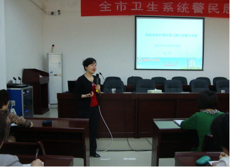 常寧市衛(wèi)生局為了提高常寧地區(qū)臨床護士的業(yè)務能力及服務水平,積極創(chuàng)建優(yōu)質護理服務示范工程,特邀請我院護理部常寧衛(wèi)生局會議廳授課,做為衡陽市護理質量控制中心,我院護理部來臨主任及腫瘤外科羅淑君護士長接受邀請,4月22日上午,共有100余名常寧地區(qū)護理管理人員在常寧衛(wèi)生局會議廳接受培訓。