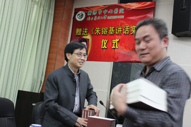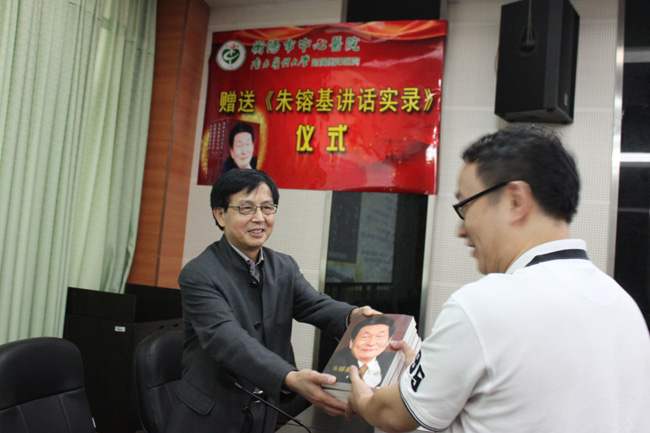 10月13日,在衡陽市中心醫(yī)院紀(jì)念建院109年之際,衡陽市中心醫(yī)院黨委書記、院長(zhǎng)申錦林向醫(yī)院150名中層干部每人贈(zèng)送了一套《朱镕基講話實(shí)錄》。