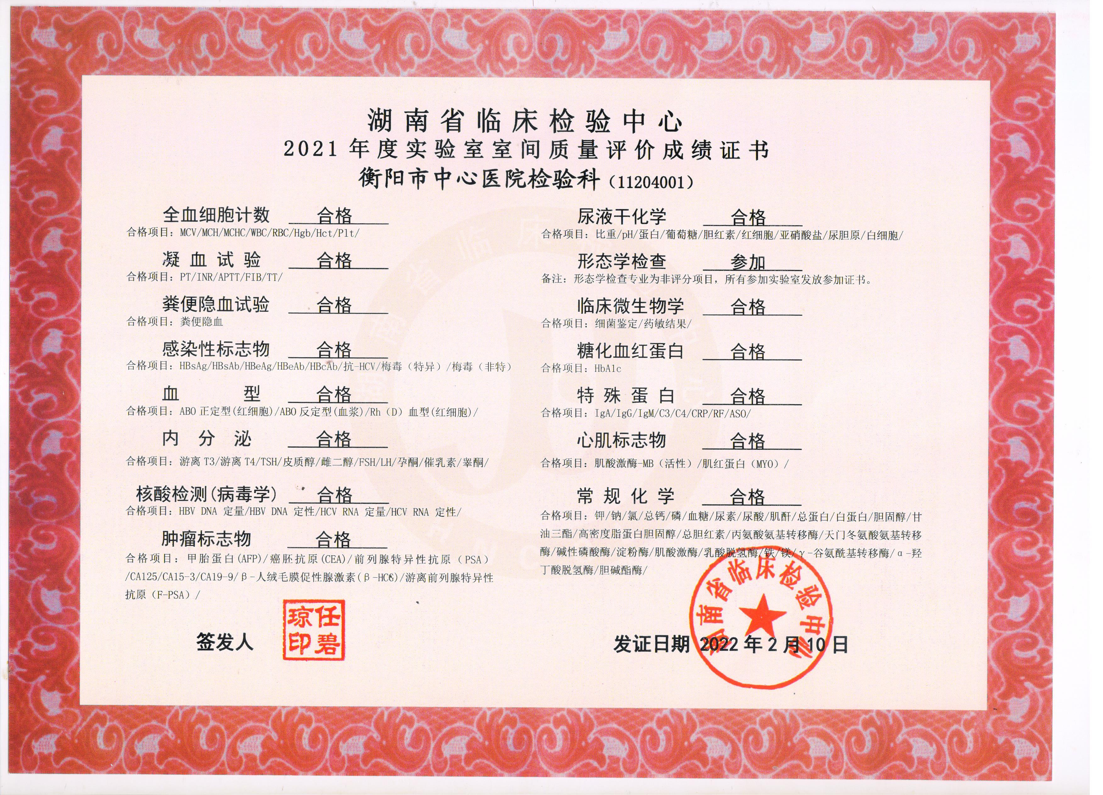 檢驗(yàn)科室間質(zhì)評證書(2021-2022年度) 發(fā)布時(shí)間:2022年09月13日 18:03:22 預(yù)覽:5564次 2021年檢驗(yàn)科室間質(zhì)評項(xiàng)目結(jié)果明細(xì)(2021-2022年度).pdf2021檢驗(yàn)科湖南省艾滋室間質(zhì)評證書(2021-2022年度).jpg2021年檢驗(yàn)科室間質(zhì)評證書(2021-2022年度).jpg2021年檢驗(yàn)科湖南省室間質(zhì)評證書項(xiàng)目(2021-2022年度.jpg