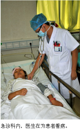 而在1樓急診科就診的一高危產(chǎn)婦,對醫(yī)護(hù)人員的評價(jià)更是“宛若親人”。這位被醫(yī)院工作人員稱為“英雄媽媽”的產(chǎn)婦,患有心臟病,且2年前剖腹產(chǎn),9月14日,由于室性心動過速,導(dǎo)致休克?!笆撬麄兊馁N心服務(wù)和精湛技術(shù),才挽救了我和孩子的生命?!边@位29歲的產(chǎn)婦流露出的對急診科的所有醫(yī)護(hù)人員的一份深深的感激之情。