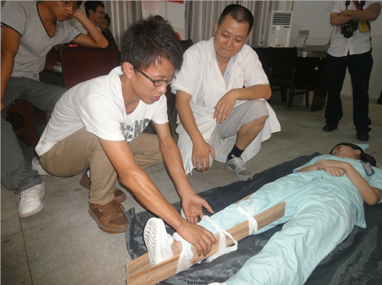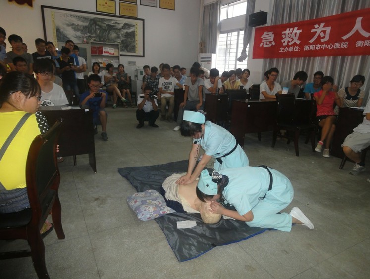 我院參加“世界急救日”宣傳活動(dòng)掠影 發(fā)布時(shí)間:2013年9月16日 預(yù)覽:2552次 每年9月的第二個(gè)星期六是“世界急救日”。 9月14日,我院急診科與市紅十字會(huì)聯(lián)合在南華大學(xué)工學(xué)院開(kāi)展了“生命高于一切”、“急救為人人”的急救知識(shí)與技能的宣傳活動(dòng)。此次活動(dòng)旨在普及衛(wèi)生救護(hù)知識(shí)、提高人們的互救自救能力,讓更多的人士掌握急救技能技巧,在事發(fā)現(xiàn)場(chǎng)挽救生命和降低傷害程度。 (急診科 王影)
