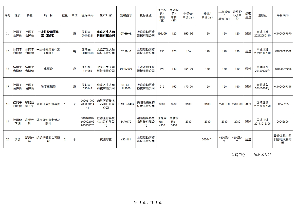 衡陽(yáng)市中心醫(yī)院2024.05.22臨購(gòu)議價(jià)結(jié)果公示