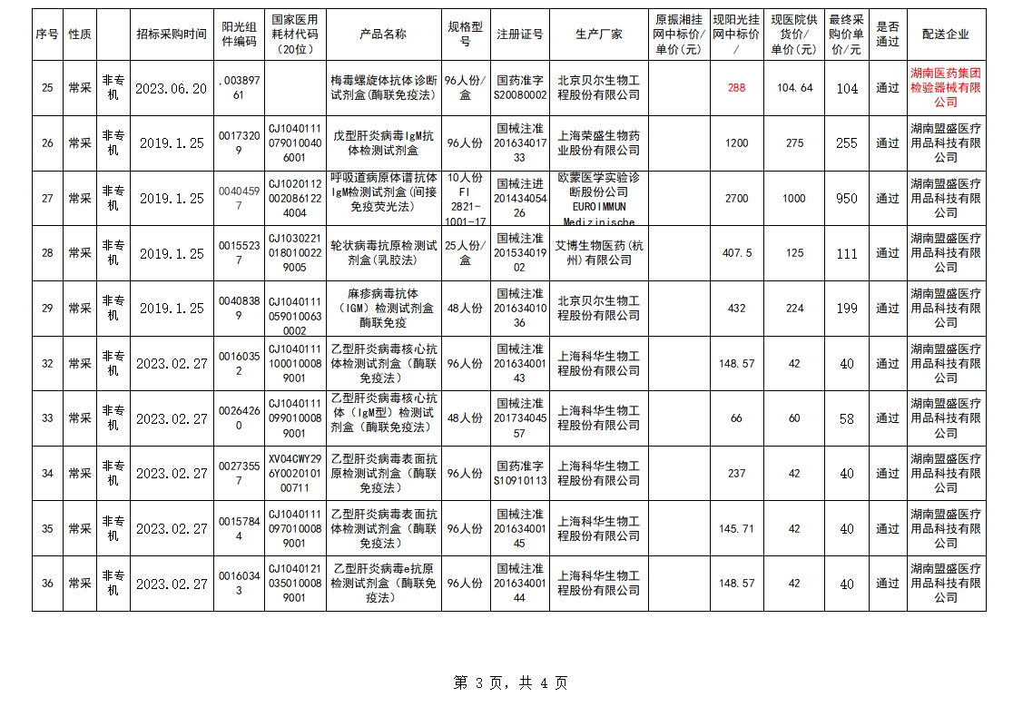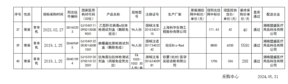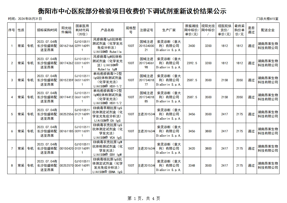 衡陽市中心醫(yī)院部分檢驗項目收費價下調試劑重新議價結果公示(5.31)