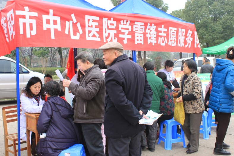 3月5日,我院“學(xué)雷鋒”志愿者們?cè)诠?huì)主席蔡春香的帶領(lǐng)下,帶著濃濃愛(ài)心和滿腔熱情來(lái)到太陽(yáng)廣場(chǎng),參加由市委組織部、市文明辦組織的“弘揚(yáng)雷鋒精神、構(gòu)建幸福衡陽(yáng)”系列志愿者服務(wù)活動(dòng)。志愿者們?cè)趶V場(chǎng)中央“安營(yíng)扎寨”,撐開(kāi)了帳篷、擺上了桌椅、備好了藥品、支起了展板,給廣大市民們帶來(lái)了暖暖的愛(ài)心義診服務(wù)。他們悉心地為前來(lái)咨詢(xún)的市民們測(cè)血壓、量體溫、開(kāi)處方,耐心地給他們講解疾病預(yù)防和健康養(yǎng)生等方面的知識(shí)。整個(gè)上午大家忙得不亦樂(lè)乎,義診現(xiàn)場(chǎng)免費(fèi)送出藥品價(jià)值3000余元、發(fā)放健康宣教資料200余冊(cè),得到了廣大市民的連聲稱(chēng)贊。