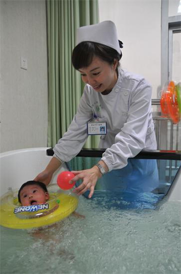 普兒護(hù)士曾偉在病房與孩子“親密接觸”。