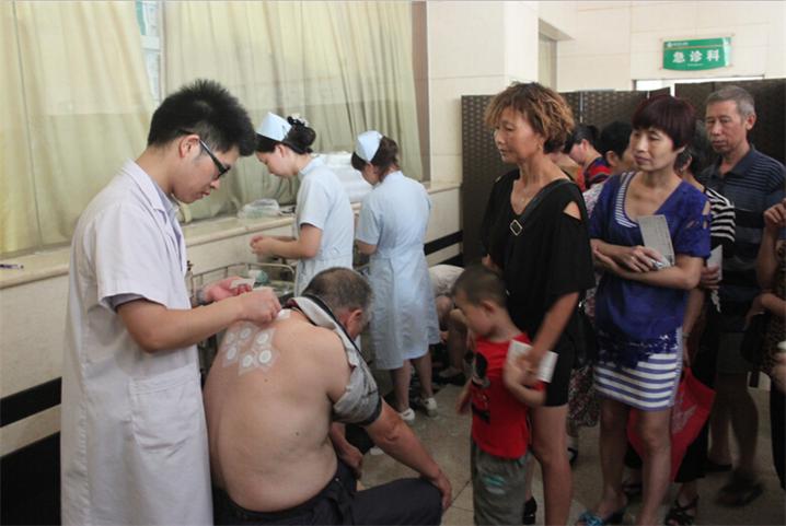 每年夏季是使用“三伏貼”防治冬季易患疾病的最佳季節(jié),7月18日已是三伏的“頭伏”,當(dāng)天上午,我院中醫(yī)科在門診大廳開展三伏貼治療,吸引著前來就診的患者。就診現(xiàn)場(chǎng),廣大患者在診室外排起一條長(zhǎng)龍,診室里圍得水泄不通。護(hù)士長(zhǎng)羅桂萍熱情地做好接待和咨詢服務(wù),科主任戴建華帶領(lǐng)醫(yī)務(wù)人員各司其職,流程順暢有序,操作精確迅速,深受患者的好評(píng)。