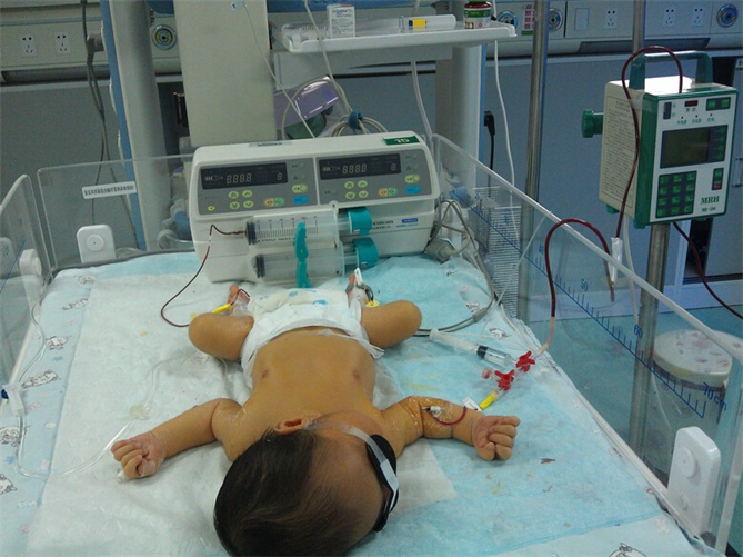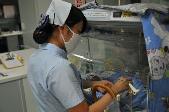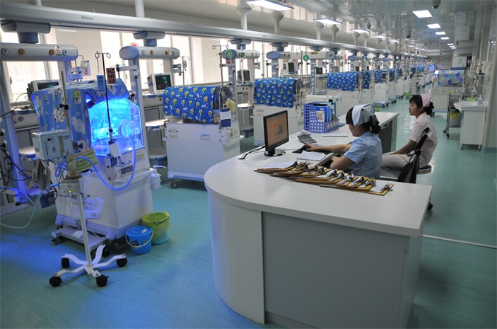 在衡陽市中心醫(yī)院婦兒中心,新生兒重癥監(jiān)護(hù)病房有30張床位,分為3個區(qū):早產(chǎn)兒區(qū)、足月兒區(qū)及康復(fù)區(qū),每個區(qū)各由一名責(zé)任護(hù)士主管。病區(qū)配備心電監(jiān)護(hù)儀、遠(yuǎn)紅外線輻射臺、藍(lán)光治療箱/儀、呼吸機(jī)、空氧混合儀等設(shè)備。