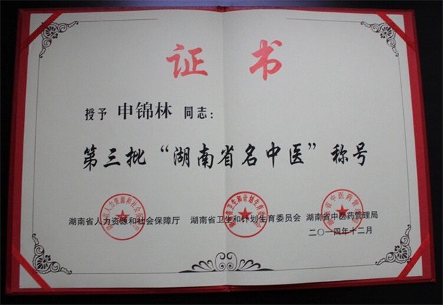 申錦林被授予“湖南省名中醫(yī)”稱號