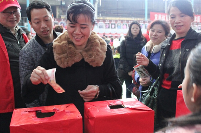 我院參加“心得樂(lè)”愛(ài)心捐款活動(dòng) 發(fā)布時(shí)間:2015年2月16日 預(yù)覽:3909次 2015年2月14日,工會(huì)主席蔡春香帶領(lǐng)我院的愛(ài)心小分隊(duì)來(lái)到衡陽(yáng)市岳屏廣場(chǎng)內(nèi)市體?;@球俱樂(lè)部的《心得樂(lè)》“窮娃盼過(guò)年”面對(duì)面捐款活動(dòng)現(xiàn)場(chǎng)。帶著醫(yī)院黨委、行政的囑托、帶著1400名干部職工的濃濃愛(ài)心,將壹萬(wàn)元愛(ài)心款捐給了來(lái)自衡陽(yáng)七縣兩區(qū)的100位貧困孩子。同時(shí),愛(ài)心小分隊(duì)隊(duì)員們也獻(xiàn)上了個(gè)人愛(ài)心捐款。我們的愛(ài)心,能讓孩子們過(guò)一個(gè)溫暖、開(kāi)心的年;我們的善舉,也許會(huì)改變他們的一生;我們的捐款,同時(shí)也會(huì)讓自己的良心得到快樂(lè)! (王恩萍)