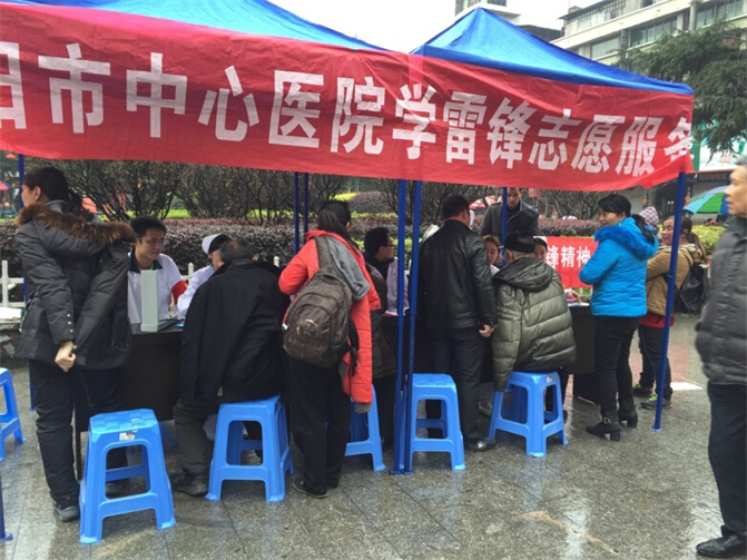我院開(kāi)展“學(xué)雷鋒”志愿服務(wù)活動(dòng) 發(fā)布時(shí)間:2015年3月6日 預(yù)覽:4112次 今年是老一輩革命家發(fā)起“向雷鋒同志學(xué)習(xí)”號(hào)召的第52周年。三月,我院積極響應(yīng)號(hào)召吹響了開(kāi)展“學(xué)雷鋒”志愿服務(wù)活動(dòng)的號(hào)角。 3月4日,我院十余名醫(yī)療專(zhuān)家和陸軍后勤保障旅衛(wèi)生營(yíng)組成一支醫(yī)療保障隊(duì),在雁峰廣場(chǎng)開(kāi)展了愛(ài)心義診活動(dòng)。3月5日正值元宵佳節(jié),冒著蒙蒙細(xì)雨,我院學(xué)雷鋒志愿者服務(wù)隊(duì)又前往雁峰廣場(chǎng)開(kāi)展了以“弘揚(yáng)雷鋒精神,創(chuàng)建文明城市”為主題的服務(wù)活動(dòng)?;顒?dòng)現(xiàn)場(chǎng),醫(yī)療專(zhuān)家們熱心地為前來(lái)咨詢(xún)的老百姓們檢查身體、測(cè)量血壓、普及疾病預(yù)防和保健知識(shí)等,用實(shí)際行動(dòng)向雷鋒同志致敬。 學(xué)習(xí)雷鋒,貴在堅(jiān)持,重在務(wù)實(shí)。據(jù)悉,我院每年都會(huì)開(kāi)展一系列“學(xué)雷鋒”志愿服務(wù)活動(dòng),并且始終堅(jiān)持將雷鋒精神貫穿于日常的服務(wù)工作當(dāng)中。這不僅是我院積極培育和踐行社會(huì)主義核心價(jià)值觀(guān)的有力體現(xiàn),也充分展現(xiàn)出新時(shí)期醫(yī)務(wù)工作者們?nèi)市娜蕫?ài)、甘于奉獻(xiàn)的良好精神風(fēng)貌。 (王穎超)