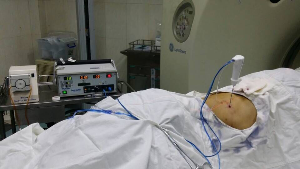 射頻消融可用于多種良惡性腫瘤,目前臨床應用較多的是肝癌、肺癌、乳腺癌。原發(fā)性腫瘤、轉移性腫瘤、不能手術切除的晚期腫瘤、手術中探查發(fā)現(xiàn)不能完全切除的腫瘤、不能承受放化療的患者均可接受射頻消融治療。衡陽市中心醫(yī)院腫內(nèi)一區(qū)在全市率先引進美國Covidien公司Cool-tip射頻消融系統(tǒng)。為腫瘤患者帶來了新的希望!