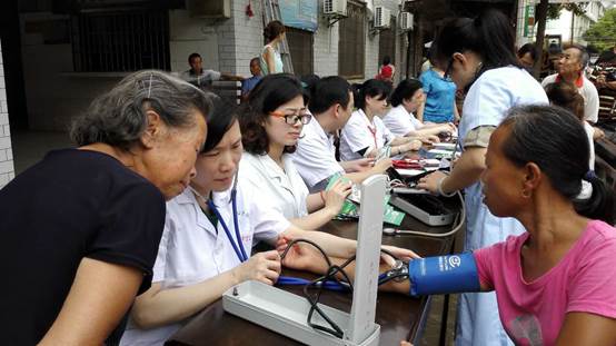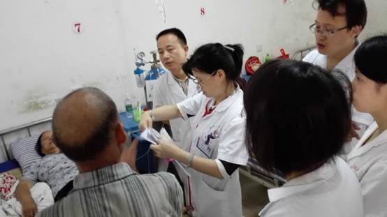 義診活動一開始,各位專家熱情地接待群眾,忙著給前來咨詢、看病的群眾測血壓、做檢查,耐心細(xì)致地解答患者的疑難問題,并有針對性地進(jìn)行健康宣教、開出健康處方。專家們緊張而有序地忙碌著,當(dāng)看到群眾們那一張張綻開的笑臉,更激發(fā)了大家的工作熱情。盡管炎炎烈日卻絲毫沒有消減大家義診的熱情。同時,覃春蓮主任、李春虹主任、朱曉宇主任等專家同鎮(zhèn)衛(wèi)生院醫(yī)生一起進(jìn)行了查房,對衛(wèi)生院專業(yè)技術(shù)人員進(jìn)行了相關(guān)指導(dǎo)。