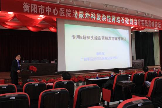復(fù)雜性腎結(jié)石微創(chuàng)治療高峰論壇在我院舉行 發(fā)布時(shí)間:2015年12月31日 預(yù)覽:5506次 湘南地區(qū)復(fù)雜性腎結(jié)石微創(chuàng)治療實(shí)戰(zhàn)高峰論壇在我院舉行 2015年12月25日,湘南地區(qū)復(fù)雜性腎結(jié)石微創(chuàng)治療實(shí)戰(zhàn)高峰論壇在我院本部21樓會(huì)議室隆重舉行。會(huì)議由我院副院長(zhǎng)資小龍主持,衡陽(yáng)市衛(wèi)計(jì)委副主任、副書(shū)記、我院黨委書(shū)記申惠龍致歡迎辭。大會(huì)邀請(qǐng)了廣州軍區(qū)武漢總院潘鐵軍教授、中山醫(yī)附一院陳凌武教授、湘雅醫(yī)院齊霖教授及廣州醫(yī)科大附一院吳文起教授等多位知名專(zhuān)家教授擔(dān)任講者和嘉賓,衡陽(yáng)市七縣(市)五區(qū)近200名醫(yī)護(hù)人員參會(huì)。 會(huì)上,潘鐵軍教授介紹腎臟穹窿穿刺球囊擴(kuò)張法建立標(biāo)準(zhǔn)PCN通道方法,從腎臟解剖原理角度詳盡講述標(biāo)準(zhǔn)通道建立原理及技巧,為減少PCN大出血發(fā)生率提供理論支持;王樹(shù)聲教授介紹負(fù)壓組合鏡配合輸尿管軟鏡治療腎結(jié)石的臨床觀察,圖文并茂介紹該項(xiàng)新技術(shù)使用優(yōu)點(diǎn)及技巧;最后,邢金春教授介紹尿源性膿毒血癥的診治,以生動(dòng)實(shí)例告訴與會(huì)學(xué)員尿源性膿毒血癥快速診斷方法及處理措施。 除了學(xué)術(shù)講座之外,大會(huì)還安排了精彩的手術(shù)演示。潘鐵軍教授演示腎鑄形結(jié)石經(jīng)穹窿穿刺法標(biāo)準(zhǔn)通道PCN-EMS碎石取石術(shù),再現(xiàn)了標(biāo)準(zhǔn)通道PCN-EMS處理復(fù)雜性結(jié)石的優(yōu)勢(shì);吳文起教授演示了Super-mini-PCNL治療腎結(jié)石,通過(guò)實(shí)戰(zhàn)方式介紹超微通道PCN處理腎輕度積水合并小結(jié)石的優(yōu)勢(shì)。會(huì)場(chǎng)氣氛活躍,精彩的演講和高超的手術(shù)技藝獲得了與會(huì)學(xué)員的陣陣掌聲,紛紛表示受益匪淺。此次會(huì)議的召開(kāi),不僅傳播了處復(fù)雜性腎結(jié)石的新理念、新技術(shù),活躍了學(xué)術(shù)氣氛,也對(duì)提高泌尿系結(jié)石診治水平,推動(dòng)湘南地區(qū)泌尿系結(jié)石治療水平起到了促進(jìn)作用。 (陶學(xué)庭)