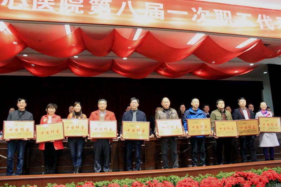 會議開始,院長申錦林宣讀了《關(guān)于表彰2015年度十佳科室、十佳個人和創(chuàng)新獎的決定》。經(jīng)科室民主推薦和院務(wù)會研究,醫(yī)院決定授予醫(yī)務(wù)部等10個科室“十佳科室”稱號,授予柏太柱等94名同志“十佳個人”稱號,授予胸外科等18個科室“技術(shù)創(chuàng)新獎”稱號,授予藥學(xué)部等6個科室“管理創(chuàng)新獎”稱號。