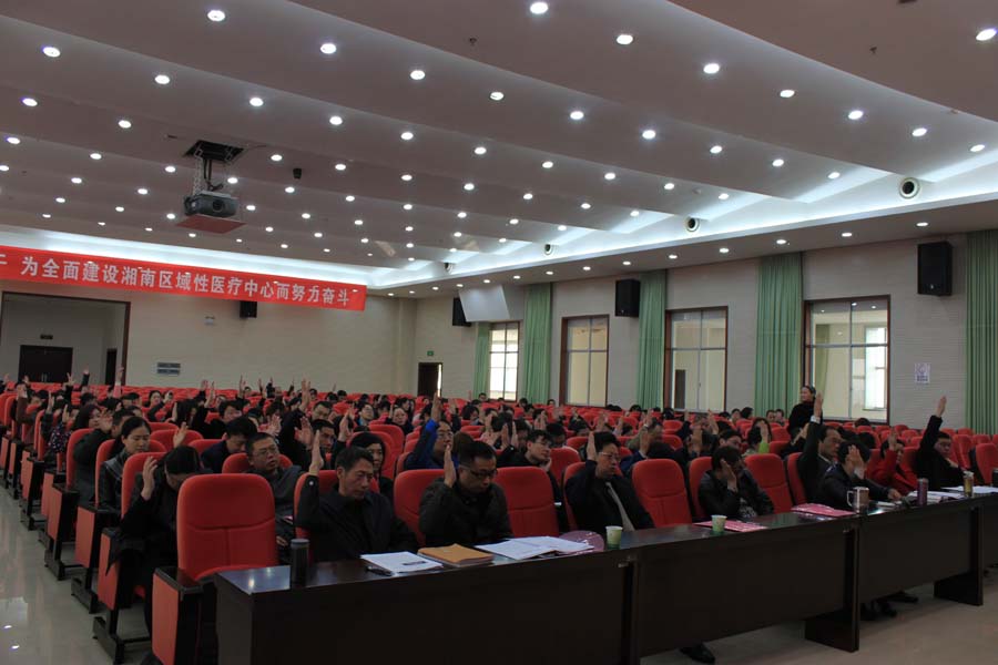 猴年新年伊始,我院召開第八屆一次職工代表大會。會議號召,全院干部職工要牢牢抓住“十三•五”期間的發(fā)展機遇,保持良好開局勢頭,統(tǒng)一思想,凝心聚力,創(chuàng)新驅(qū)動,穩(wěn)步推進,早日建成綜合優(yōu)勢明顯、??铺厣怀龅南婺蠀^(qū)域性醫(yī)療中心。