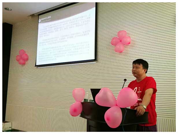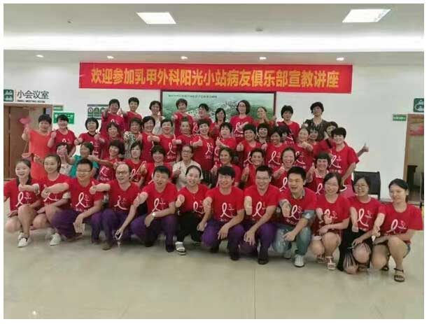 醫(yī)患攜手,重建華彩人生 發(fā)布時(shí)間:2016年9月23日 預(yù)覽:2256次 2016年9月13號,乳甲外科陽光小站舉行了第二屆粉紅絲帶乳腺癌關(guān)愛月系列宣教活動(dòng)。 尹軍主任介紹乳腺癌近年來發(fā)病率及臨床表現(xiàn),以及我院乳甲科近兩年發(fā)展?fàn)顩r。 羅瓊主治醫(yī)師向患者講解乳腺癌飲食及生活方式方面注意事項(xiàng)。 厲璐主管護(hù)師與病友交流 活動(dòng)合影