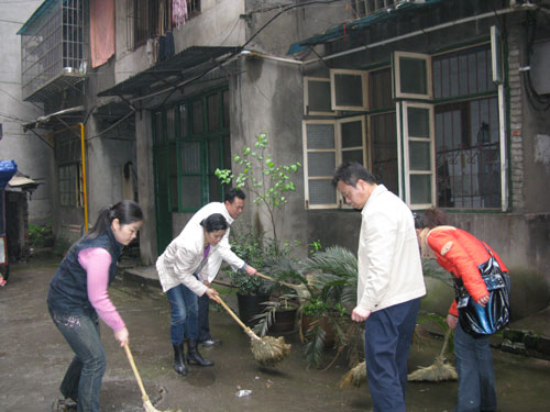 我院開展“全民衛(wèi)生日”活動有聲有色 發(fā)布時間:2005年4月11日 預覽:11106次 我院開展文明創(chuàng)建“全民衛(wèi)生日”活動有聲有色 為了搞好院容院貌建設,努力創(chuàng)造一個清新舒適的醫(yī)療和工作環(huán)境。醫(yī)院文明創(chuàng)建工作小組認真執(zhí)行上級有關愛國衛(wèi)生、環(huán)境保護等各項法規(guī)政策,高度重視和大力支持醫(yī)院環(huán)境的綠化、美化、凈化工作,切實做到“門前三包,門內(nèi)達標”。 今年以來,按照有關部門部署,我院文明創(chuàng)建“全民衛(wèi)生日”活動衛(wèi)生包干區(qū)域由原雁城路調(diào)整到醫(yī)院家屬區(qū)內(nèi),醫(yī)院文明創(chuàng)建工作領導小組高度重視,召開專門會議,布置相關任務,并對以往工作中做得不足的地方予以改進。將原來的“全民衛(wèi)生日”活動小組細分為8個小組,院領導親自掛帥,并落實組長責任制,制定一系列的考勤、獎罰措施,確保我院文明創(chuàng)建“全民衛(wèi)生日”活動開展扎實、有效。通過努力,我院院容院貌煥然一新。在每周全市文明創(chuàng)建工作領導小組驗收情況通報中屢屢榮登“紅旗榜”。 圖為 “全民衛(wèi)生日”小組成員冒雨參加衛(wèi)生活動情景。