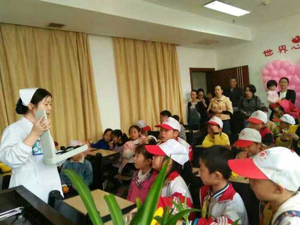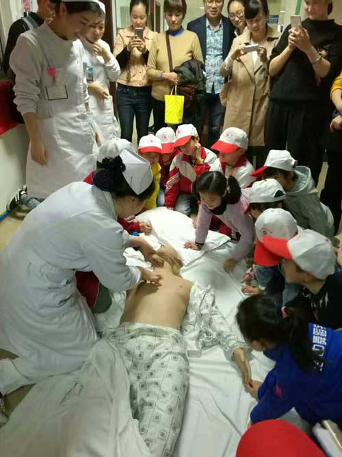 抓住心梗突發(fā)救治“黃金120分鐘” 發(fā)布時間:2016年11月25日 預(yù)覽:2707次 中國心梗日,晚報小記者走進(jìn)衡陽市中心醫(yī)院心血管內(nèi)科感受生命接力 “面對生命,我們必須爭分奪秒?!?9日下午,在第三個中國心梗日來臨之際,為讓心梗突發(fā)急救知識普及到千家萬戶,來自全市各校的25名晚報小記者們來到衡陽市中心醫(yī)院心血管內(nèi)科,參加該院組織的“中國心梗日——體驗(yàn)心梗急救”公益活動。該院心血管內(nèi)科醫(yī)護(hù)人員為小記者們及其家長講解急救方面的相關(guān)知識,并進(jìn)行心肺復(fù)蘇模擬技能體驗(yàn)。 在醫(yī)護(hù)人員帶領(lǐng)下,小記者們認(rèn)真聆聽了該院心內(nèi)科柏太柱、朱曉宇等專家關(guān)于心梗突發(fā)及急救等健康知識講座,專家們通俗易懂的講解,讓小記者們對心梗知識有了更深入的了解,意識到了心臟對生命延續(xù)的重要性。 隨后,心血管內(nèi)科倪淑英、劉蕓、周景衡、丁文婕等護(hù)理專家現(xiàn)場進(jìn)行了心梗突發(fā)治救黃金120分鐘的“心肺復(fù)蘇”模擬演示。她們分步驟講解,詳細(xì)展示了在突發(fā)狀況下爭分奪秒地?fù)尵壬募记?,并邀請小記者進(jìn)行互動,“手把手”地指導(dǎo)正確的按壓部位,操作方法以及按壓力度。通過醫(yī)護(hù)人員手把手地示范,點(diǎn)對點(diǎn)地操作,小記者們都已經(jīng)很清楚地了解了急救步驟、應(yīng)急措施,能做到一邊呼救,一邊熟練地清除患者呼吸道異物,打開氣道,施行人工呼吸及完成胸外心臟按壓,儼然成為一個個小急救員。 市中心醫(yī)院心血管內(nèi)科主任柏太柱主任醫(yī)師在接受采訪時稱:“我們非常歡迎衡陽晚報小記者們到我們心內(nèi)科進(jìn)行學(xué)習(xí)采訪。他們平時都是班級甚至學(xué)校里的佼佼者,他們多才多藝、對知識的向往,也激發(fā)了我們作為一名基層醫(yī)務(wù)工作者更好地為群眾的健康生活保駕護(hù)航的信心和決心?!?BR> 活動結(jié)束,隨行家長紛紛表示,很感謝市中心醫(yī)院精心準(zhǔn)備的這次校外課堂,不僅讓孩子們通過試聽、互動等形式認(rèn)識到了生命的寶貴,自己在這個過程中對對心梗家庭急救知識也有了更更深入的了解,提升了自救、家庭急救與預(yù)防風(fēng)險的意識。