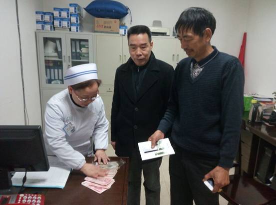 兒科王有元副主任拾重金交還失主 發(fā)布時(shí)間:2017年2月27日 預(yù)覽:2100次 2017年2月25日上午近9時(shí),一家五口急匆匆地帶著小孩來(lái)到我院門(mén)診兒科就診,接診的是副主任王有元醫(yī)師。他詢問(wèn)小孩家長(zhǎng)得知3歲的劉宇明因誤食過(guò)期小包裝的麻辣食品,引起食物中毒,后經(jīng)診斷為腸炎和脫水,身體非常虛弱。王主任接著看了幾個(gè)病人后才發(fā)現(xiàn)桌子上有一大包錢(qián),于是急忙把錢(qián)和一張?jiān)\療發(fā)票交給了門(mén)診辦公室負(fù)責(zé)人,便又回診室接診病人了。 門(mén)辦兩位負(fù)責(zé)人經(jīng)清點(diǎn)后發(fā)現(xiàn)現(xiàn)金5399元,經(jīng)對(duì)照發(fā)票上的名字,我們查找了患者家長(zhǎng)的電話號(hào)碼。好不容易聯(lián)系上已經(jīng)轉(zhuǎn)診離去的陪護(hù),聞?dòng)嵑蠡颊呒议L(zhǎng)急忙驅(qū)車(chē)趕來(lái),經(jīng)確認(rèn)后我們將錢(qián)交給了急得滿頭大汗的患者小孩外公羅齊慶手上,患兒外公激動(dòng)地表示“感謝、感謝、感謝……”,直夸醫(yī)務(wù)人員的高尚品德。 (張永明) 左邊是門(mén)診辦公室負(fù)責(zé)人李春梅,中間為兒科副主任王有元,右邊是患者小孩外公羅齊慶