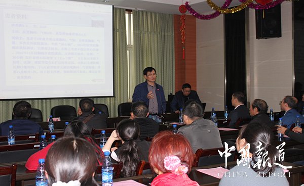 衡陽市中心醫(yī)院醫(yī)務部部長、大內科主任、心內科主任、胸痛中心行政總監(jiān)柏太柱講課。(陳平國 攝)