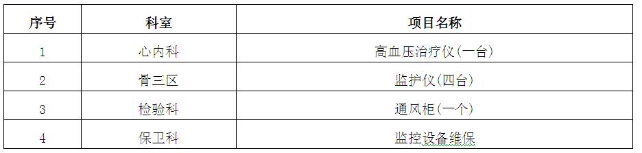 因醫(yī)院發(fā)展的需要,我院擬于近期對一批醫(yī)療設(shè)備及進行院內(nèi)招標采購,歡迎具備條件的公司報名參加。