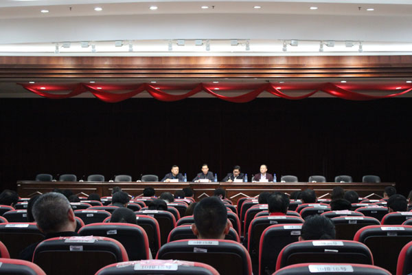 4月17日下午,我院在門診大樓21樓大會議室召開干部大會,聽取衡陽市委關(guān)于我院主要領(lǐng)導同志職務任命決定。市委組織部副部長雷雨時出席會議并講話,市衛(wèi)計委黨委書記、主任鄒愛民主持大會,我院中層以上干部約200余人參加了會議。