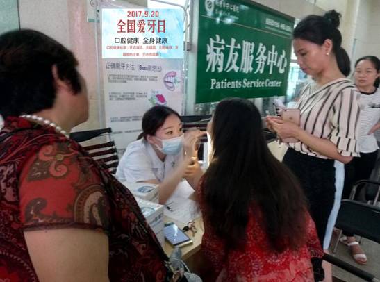 積極開展全國第29個(gè)“愛牙日”活動(dòng) 發(fā)布時(shí)間:2017年9月25日 預(yù)覽:1996次 衡陽市中心醫(yī)院口腔科積極開展全國第29個(gè)“愛牙日”活動(dòng) 通訊員張永明報(bào)道:為了在公眾中進(jìn)行牙病防治知識(shí)的普及教育,增強(qiáng)口腔健康觀念和自我口腔保健的意識(shí),幫助公眾建立口腔保健的習(xí)慣,從而提高全市的口腔健康水平。9月20日,衡陽市中心醫(yī)院口腔科在門診大廳開展了第29個(gè)全國“愛牙日”活動(dòng)。今年活動(dòng)主題是“口腔健康 全身健康”。 “愛牙日”活動(dòng)通過設(shè)置宣傳板,散發(fā)宣傳單、宣傳手冊(cè),設(shè)立為民義診咨詢臺(tái)、答題有獎(jiǎng)等多種方式向廣大群眾宣傳相關(guān)知識(shí)。專家用口腔模型深入淺出講解愛牙護(hù)牙的相關(guān)知識(shí),并倡導(dǎo)大家關(guān)愛牙齒,從小做起,持之以恒,指導(dǎo)正確的刷牙方法??谇唤】档臉?biāo)準(zhǔn):牙齒清潔,無齲洞,無痛疼感,牙齦顏色正常,無出血現(xiàn)象。牙不好,會(huì)影響全身健康,危及心臟健康,誘發(fā)肺部感染、糖尿病,易導(dǎo)致早產(chǎn),缺牙不補(bǔ)還會(huì)傷及血管。 當(dāng)天“愛牙日”義診近80人次,9月20日至9月30日,開展“愛牙日”活動(dòng)期間,衡陽市中心醫(yī)院口腔科承諾所有患者可享受免掛號(hào)費(fèi)進(jìn)行口腔檢查,潔牙8折優(yōu)惠等。