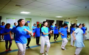 采訪中,記者了解到,市中心醫(yī)院心血管內(nèi)科在“一科一特色”優(yōu)質(zhì)服務(wù)活動中,成立心臟康復室,護士長倪淑英帶著護士姐妹們給廣大心血管患者跳心臟康復操。