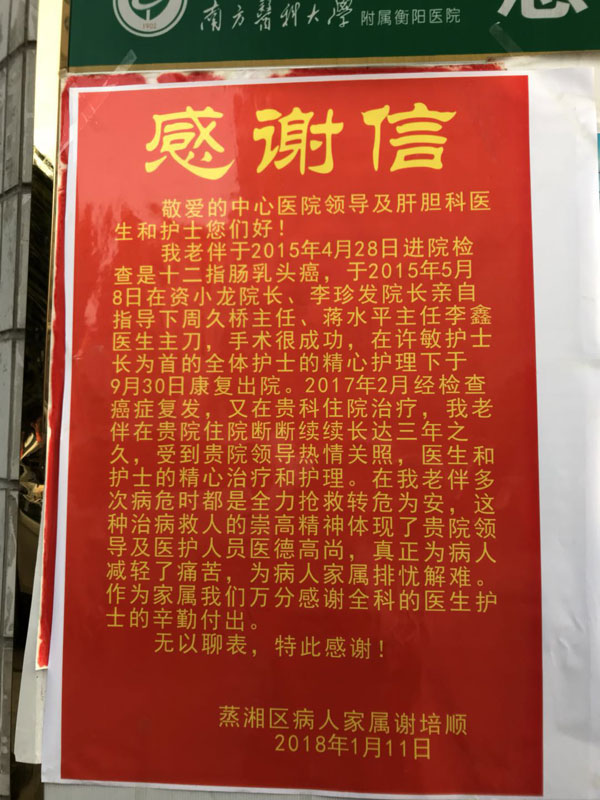 衡陽市中心醫(yī)院骨科2018年1月28日錦旗