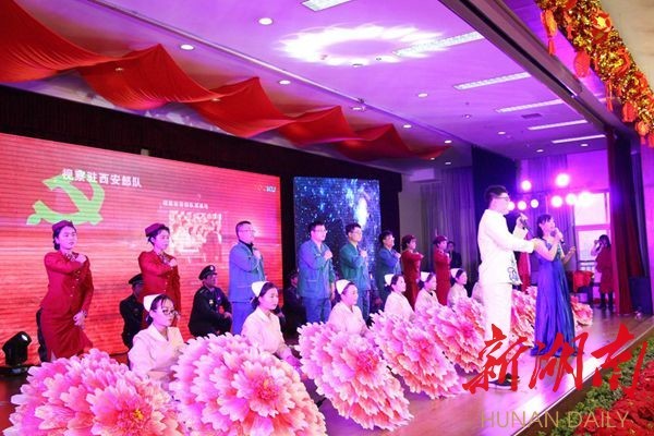 當(dāng)天下午2點30分,晚會在歡快喜慶的舞蹈《共圓中國夢》中拉開帷幕。舞蹈、音樂劇、詩朗誦、歌曲串燒、小品、音樂情景劇、表演唱等節(jié)目輪番上陣,精彩紛呈。歌舞《不忘初心》抒發(fā)了醫(yī)務(wù)工作者牢記使命、砥礪前行的豪情;歌舞《擼起袖子加油干》展示了衡陽市中心醫(yī)院邁進(jìn)新時代、譜寫新篇章的信心和決心。最后,晚會在大合唱《歌唱祖國》中落下帷幕。
