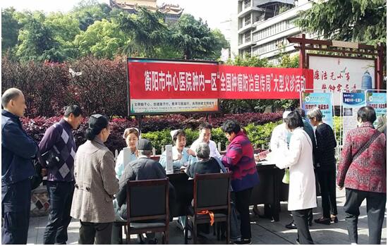 抗癌路上,你我同行 發(fā)布時(shí)間:2018年4月21日 預(yù)覽:2149次 通訊員劉詩報(bào)道:4月15日至4月21日是第二十四全國腫瘤防治宣傳周,衡陽市中心醫(yī)院腫內(nèi)一區(qū)攜手內(nèi)科一支部、三支部,機(jī)關(guān)一支部開展了以“科學(xué)抗癌,關(guān)愛生命-- --抗癌路上,你我同行”為主題的腫瘤防治知識(shí)宣傳及大型義診活動(dòng)。防治宣傳周一系列活動(dòng)旨在幫助大家預(yù)防腫瘤的發(fā)生,早期發(fā)現(xiàn)癌癥,盡早治療癌癥,幫助癌癥患者正確認(rèn)識(shí)癌癥,與醫(yī)院和社會(huì)各界人士攜手努力戰(zhàn)勝病魔。 上午8點(diǎn),在腫內(nèi)一區(qū)唐玉成主任的帶領(lǐng)下,醫(yī)護(hù)人員共10余人在雁峰廣場早早拉起“科學(xué)抗癌,關(guān)愛生命”全國腫瘤防治周主題宣傳橫幅及多幅腫瘤防治科普知識(shí)海報(bào),現(xiàn)場向轄區(qū)居民發(fā)放宣傳腫瘤防治知識(shí)宣傳單及資料 300余份,并為群眾提供義診、咨詢、答疑等多種形式的服務(wù)。他們向居民講解防治、抗癌的基本知識(shí),幫助大家樹立對(duì)腫瘤疾病的正確認(rèn)識(shí),引導(dǎo)居民養(yǎng)成健康的生活習(xí)慣,樹立“早發(fā)現(xiàn)、早診斷、早治療”的意識(shí)。當(dāng)天參與咨詢、義診的群眾達(dá)100余人次。 本次宣傳活動(dòng)受到廣大群眾的歡迎和好評(píng),通過此次活動(dòng)的開展,使廣大群眾提高了防癌意識(shí),增加了科學(xué)知識(shí),產(chǎn)生了良好的社會(huì)影響。