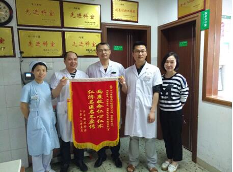 術后胃腸外科團隊應用快速康復等理念,注意心肺腦等臟器保護,術后第二天患者即下床活動及進食流質食物。術后未發(fā)生切口感染、吻合口瘺、吻合口出血等并發(fā)癥。汪爺爺一再感謝譚主任及其團隊,一謝未再添新疤和悉心治療及護理,二謝不僅二次挽救了生命,更是保全了他的顏面及尊嚴。何出此言呢?原來是腫瘤距肛門位置太近,加上患者高齡及基礎疾病多,一般需做預防性回腸造口或直腸癌切除+乙狀結腸造口術,而在譚主任及其團隊的努力下,一期行腸吻合,避免再次手術,提高患者生活質量,保全了汪爺爺的生理結構,術后亦未出現吻合口瘺等現象。這不僅是汪老的福音,也是胃腸外科業(yè)務技術水平的又一大突破。