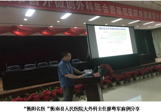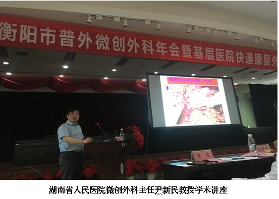 通訊員許敏報道:為促進普外微創(chuàng)技術(shù)發(fā)展及快速康復(fù)外科理念推廣,加強學習和交流,6月9日-6月10日由衡陽市醫(yī)學會主辦、衡陽市中心醫(yī)院承辦的“衡陽市普外微創(chuàng)外科年會暨基層醫(yī)院快速康復(fù)外科推廣會”在衡陽市中心醫(yī)院綜合樓21樓大會議室舉行。衡陽市衛(wèi)生計生委副主任、市醫(yī)學會會長胡曉明出席會議,市中心醫(yī)院黨委書記肖友儒發(fā)表了熱情洋溢的歡迎致辭,我院副院長、普外中心主任、衡陽市普外腹腔鏡微創(chuàng)外科學組主任委員李珍發(fā)博士擔任大會主席并致開幕詞,來自省內(nèi)知名的普外科大咖、麻醉科權(quán)威及護理專家、基層醫(yī)院同道300余人齊聚一堂,共襄盛舉。