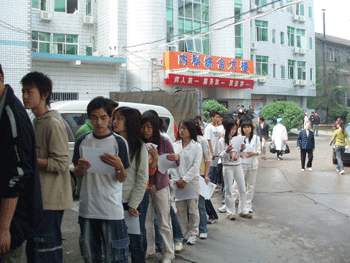 萬名城區(qū)高考學(xué)生在我院接受體檢 發(fā)布時(shí)間:2006年5月22日 預(yù)覽:6097次 市中心醫(yī)院精心組織并提醒考生注意事項(xiàng) 通訊員鄒建軍報(bào)道 本市高考學(xué)生體檢工作4月10日啟動(dòng),城區(qū)近萬名考生將分批到市中心醫(yī)院接受體檢,此次體檢預(yù)計(jì)在本月29日結(jié)束。 體檢第一天,筆者在市中心醫(yī)院體檢中心看到,數(shù)百名參加體檢的考生正在工作人員的帶領(lǐng)下有條不紊地進(jìn)行透視、內(nèi)外科、身高體重、視力、聽力、血壓、嗅覺等10多個(gè)項(xiàng)目的檢查。據(jù)連續(xù)6年參與組織全市城區(qū)高考體檢工作的市中心醫(yī)院院長段曉明博士介紹,該院每年都會(huì)把高考體檢工作作為重要任務(wù)認(rèn)真抓好,醫(yī)院多次召開專題會(huì)議進(jìn)行部署安排,要求體檢專家必須嚴(yán)格按照《普通高等學(xué)校招生體檢工作指導(dǎo)意見》把握好標(biāo)準(zhǔn),遵守體檢紀(jì)律,體檢時(shí)必須關(guān)閉通訊工具,體檢場地要求全封閉,無關(guān)人員一律不得入內(nèi)。為組織好今年的體檢工作,市中心醫(yī)院還特地對體檢中心進(jìn)行了裝修,配備了全新的體檢用具和智能體檢軟件系統(tǒng)。 市中心醫(yī)院的專家還提醒參檢考生在體檢前一天要注意休息,保證睡眠;體檢當(dāng)天飲食不能過飽,要適量進(jìn)一些清淡飲食;體檢時(shí)不要過度緊張,以免影響體檢效果;考生更不得擅自涂改體檢表上內(nèi)容或?qū)Ⅲw檢表帶出體檢場地外,否則將會(huì)視為廢表。