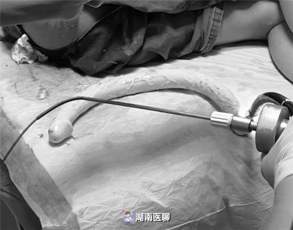 這時伍友興主任想到從鉗道口注入液體石蠟潤滑腸壁,最后成功將一3.5cmx44.5cm的腸道異物取出。