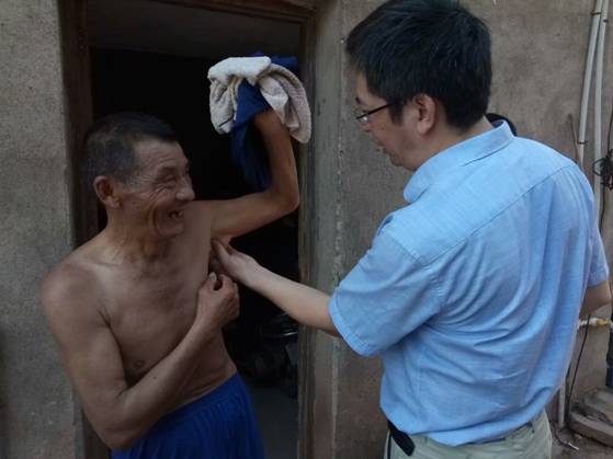 2名院領(lǐng)導(dǎo)走訪慰問結(jié)對幫扶困難群眾 發(fā)布時間:2018年8月9日 預(yù)覽:2745次 通訊員郭偉報道:2018年8月8日,衡陽市中心醫(yī)院副院長李珍發(fā)、蔣崢嶸一行到耒陽市淝田鎮(zhèn)肥美村走訪慰問結(jié)對幫扶困難群眾。 在肥美村,李珍發(fā)、蔣崢嶸聽取了醫(yī)院駐村工作隊的扶貧工作開展情況匯報,實地查看了村里的集體經(jīng)濟(jì)項目,走訪慰問貧困戶段茂順、謝秋菊、蔣嚴(yán)彪家,現(xiàn)場查看了他們的生產(chǎn)生活情況。在段茂順家,李珍發(fā)詳細(xì)了解段茂順的生活情況,得知段茂順身體還好,當(dāng)看到段茂順今年收獲了十幾袋油菜籽、半籮筐綠豆、十多個冬瓜,李珍發(fā)很是高興,鼓勵他多種植,多發(fā)展庭院經(jīng)濟(jì),并馬上聯(lián)系本單位食堂,把他的所有綠豆、冬瓜購買。承諾他油菜籽榨好油,會幫助他銷售。據(jù)了解,李珍發(fā)和駐村工作隊今年給段茂順申請到了危房改造項目,目前房屋地基已建好,段茂順每年有1900多元的養(yǎng)老金和計生獎勵,其和兒子的醫(yī)保由政府代繳,其兒子在廣東打工,日子在逐漸改善。 李珍發(fā)又來到謝秋菊家,同她家人親切交談,得知謝秋菊擔(dān)心他父親因腋窩下長了一個東西,很緊張。作為外科學(xué)博士、主任醫(yī)師,李珍發(fā)仔細(xì)查看患者腋下長的一個瘤子,微笑著安撫患者:“老人家,不要緊,這是個良性的皮下脂肪瘤,你只需做個小手術(shù),就沒事了。先觀察也可以,這個月你可以到我院去免費體檢。”患者緊張的神情一下子輕松了,連忙感謝李珍發(fā)博士。當(dāng)李珍發(fā)了解到謝秋菊父親家還養(yǎng)了一百多只鴨,有個女婿在做電商時,鼓勵他們大力發(fā)展家庭養(yǎng)殖業(yè),銷路不要擔(dān)心,網(wǎng)店、醫(yī)院都會幫助銷售的。 在蔣嚴(yán)彪家,蔣崢嶸和蔣嚴(yán)彪爺爺奶奶親切交談,得知蔣嚴(yán)彪暑假時去了江西他媽媽打工的地方。據(jù)了解,蔣嚴(yán)彪父親因病去世,母親長期在江西定居打工,蔣嚴(yán)彪缺乏父母關(guān)愛,有厭學(xué)傾向。蔣崢嶸叮囑其親人和駐村工作隊要多關(guān)心蔣嚴(yán)彪的學(xué)習(xí)和教育,并查看家里的雞鴨、魚塘、棗樹、手工加工業(yè)情況。當(dāng)他看到蔣嚴(yán)彪的爺爺在用機(jī)器加工面條,立即購買了52斤面條,購買了許多紅棗,告訴兩位老人可以去衡陽市中心醫(yī)院免費體檢,老人家很是高興。(衡陽市中心醫(yī)院 郭偉) 副院長李珍發(fā)博士和貧困戶親切交談 副院長李珍發(fā)博士給貧困群眾看病 副院長蔣崢嶸(右一)了解貧困群眾家庭手工業(yè)情況 副院長蔣崢嶸購買貧困戶面條和紅棗