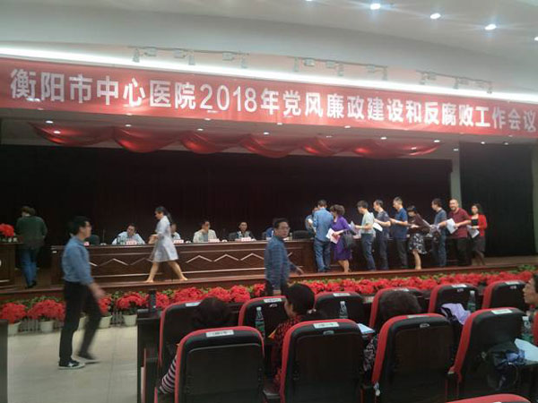 通訊員來臨報道:4月20日下午,衡陽市中心醫(yī)院召開2018年度黨風(fēng)廉政建設(shè)和反腐敗工作會議。中心醫(yī)院在家院領(lǐng)導(dǎo)、中層干部以及黨員共計300余人參加了會議,市紀(jì)委駐衛(wèi)計委紀(jì)檢組劉全能副組長出席會議并講話。