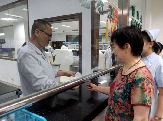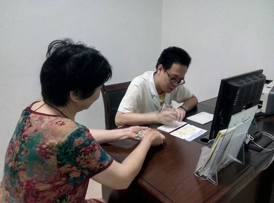 2、二樓服務(wù)臺(tái)分診后,醫(yī)師通過(guò)問(wèn)診為病人開(kāi)出手工處方。