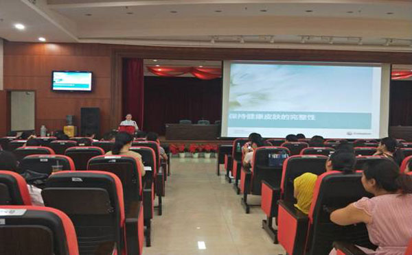 為確保培訓(xùn)效果,會(huì)議邀請(qǐng)到湖南省護(hù)理學(xué)會(huì)造口傷口失禁專業(yè)委員會(huì)副主任委員、中南大學(xué)湘雅附二醫(yī)院國際造口治療師--楊靜老師蒞臨現(xiàn)場(chǎng)為大家進(jìn)行授課,課題內(nèi)容為”如何保持皮膚的完整性”。本次學(xué)習(xí)會(huì)議,不僅有來自各臨床科室的傷口聯(lián)絡(luò)員、還有除值班人員以外的全體護(hù)士和實(shí)習(xí)生護(hù)士。培訓(xùn)會(huì)上,楊靜老師深入淺出地為大家講述了皮膚的相關(guān)知識(shí)點(diǎn)、皮膚的結(jié)構(gòu)分層及作用、影響皮膚健康的因素,并與大家一起學(xué)習(xí)鑒別和討論了潮濕相關(guān)性皮膚損傷與壓力性損傷兩者之間的區(qū)別。課后,大家紛紛踴躍舉手說出自己心中對(duì)傷口、造口的問題,楊老師一一為大家答疑解惑。整個(gè)學(xué)習(xí)會(huì)氣氛活躍、互動(dòng)積極,與會(huì)人員紛紛表示受益匪淺。
