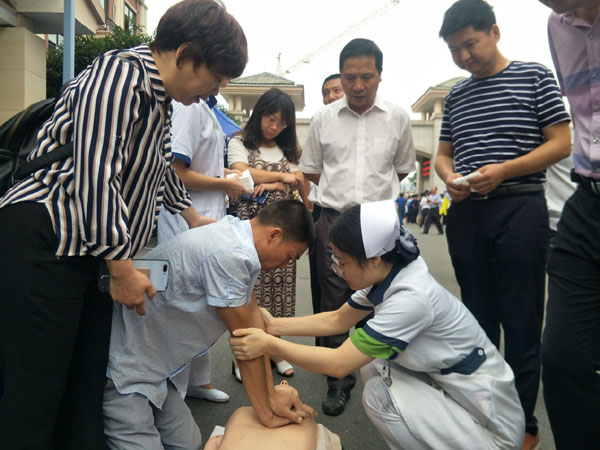 科普日?qǐng)D片新聞 發(fā)布時(shí)間:2018年09月27日 11:29:23 預(yù)覽:2242次 9月26日是全國(guó)科普日,衡陽(yáng)市中心醫(yī)院組隊(duì)參加市里統(tǒng)一組織的科普活動(dòng),宣傳“救”在身邊急救知識(shí),市民踴躍參與。圖為醫(yī)務(wù)人員手把手教市民進(jìn)行心肺復(fù)蘇操作。(殷君發(fā))