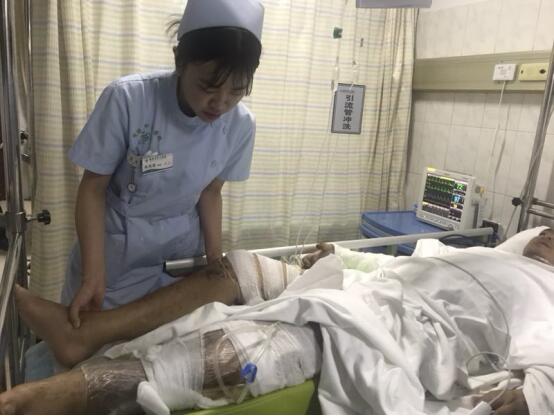 由于患者病情重,隔天需行一次血透治療,且傷口引流管多,需要持續(xù)不間斷引流,為防止血透轉(zhuǎn)運(yùn)途中管道脫落,保證引流效果,每次血透時(shí),責(zé)任護(hù)士全程接送,不敢有半點(diǎn)松懈?;颊唧w重200多斤,手足踝外科的護(hù)士們每兩個(gè)小時(shí)為其翻身拍背,并功能鍛煉、持續(xù)傷口引流管沖洗、安慰鼓勵(lì)患者??紤]到患者家住外地,為保證患者的營養(yǎng),護(hù)士長還主動聯(lián)系食堂,為家屬提供煲湯做飯條件。經(jīng)過醫(yī)患雙方一個(gè)多月的共同努力,患者腎功能慢慢恢復(fù),患肢逐漸恢復(fù)正常,不僅保住了性命,也保住了肢體,患者于9月23號康復(fù)出院。