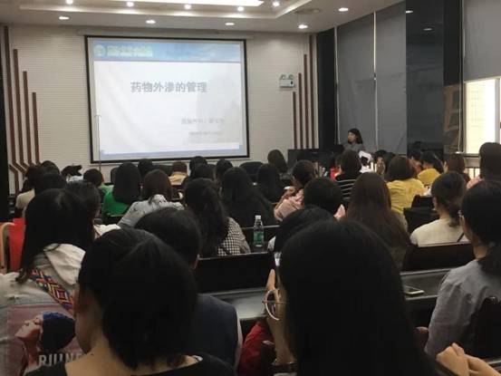 守護針尖上的安全,你我同行 發(fā)布時間:2018年10月16日 11:40:25 預(yù)覽:2526次 通訊員肖志喜報道:靜脈輸液是臨床治療中常用的治療手段,為了提高我院靜脈治療水平,靜療小組積極提高業(yè)務(wù)能力和輸液安全管理能力,并帶動全院輸液治療更加規(guī)范化、科學(xué)化,從而為患者提供安全、有效的靜脈治療。 10月10日下午三點,我院靜療??菩〗M第四季度的培訓(xùn)在華新分院15樓會議室舉行。護理部副主任楊柳、護理總帶教羅明慧老師、各科護士長、各科室靜療??菩〗M聯(lián)絡(luò)員參加了此次培訓(xùn)活動,培訓(xùn)由靜療小組組長李小敏護士長主持。 此次培訓(xùn)分為理論講解和操作示范兩部分。課上,唐美容護士長就藥物外滲的原因、表現(xiàn)、處理及預(yù)防進行了深入淺出的講解,課堂氣氛活躍,現(xiàn)場積極互動。隨后,泌尿外科護士李瑯用情景模擬的方法現(xiàn)場演示了留置針的規(guī)范操作,并對大家的提問給予詳細解答和示范。 最后,羅明慧老師總結(jié)了在靜脈治療操作中護士應(yīng)掌握的要點及各個細節(jié),進一步提高輸液治療水平,保障患者安全。 通過此次培訓(xùn),大家對藥物外滲的管理有了更深刻的認識,對靜脈治療操作技術(shù)的規(guī)范有了新的正確理解,也體會到了操作中細節(jié)的重要性。學(xué)以致用,在提高自己業(yè)務(wù)能力的同時,為患者提供更安全、有效的護理服務(wù)。