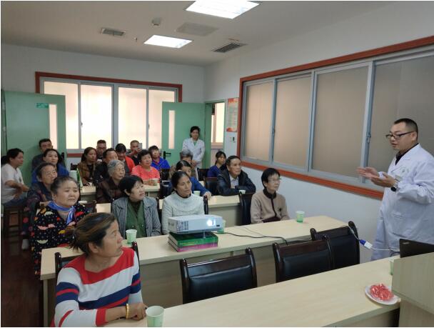 通訊員曾彩云報道:老年人是發(fā)生營養(yǎng)失調的高危人群,因老人味嗅覺及口腔功能等的退化,易受疾病、藥物、情緒等的影響,導致機體各種營養(yǎng)的失衡。老年人合理營養(yǎng)的飲食可減慢衰老,增強老年人的體質。2018年10月31日,衡陽市中心醫(yī)院老年病科特邀請醫(yī)院營養(yǎng)科主任賀棟梁博士,為病友們講解老年病患、高血壓和糖尿病患者的營養(yǎng)需求以及合理科學膳食的建議,醫(yī)院膳食科的工作人員們也參與了聽課。講座科普健康營養(yǎng)知識、均衡營養(yǎng)的重要性,指出一些常見的老年人在膳食營養(yǎng)方面的錯誤觀念,培養(yǎng)健康的飲食生活方式,受到了老年朋友的廣泛認同和熱情響應。同時,大家紛紛踴躍發(fā)言,交流了很多生活中關于健康、保健、營養(yǎng)等的問題。