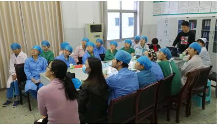 此項目主要內(nèi)容分為兩部分,第一是理論知識方面的培訓,通過微信答題、統(tǒng)計成績、分析理論盲點后進行有針對性的理論培訓。微信答題環(huán)節(jié),大家相當?shù)耐度耄脦孜焕蠋煻嫉昧烁叻?,手術(shù)室的老師們理論知識也是相當扎實的。在微信答題后,又進行了理論培訓,遇到有疑問的地方,有意見不統(tǒng)一的,大家都爭先恐后的發(fā)表自己的看法,現(xiàn)場也是熱火朝天。第二是行為習慣的訓練,通過手術(shù)室的皮膚保護信息表的填寫和監(jiān)控,導入統(tǒng)計,分析行為盲點后制作預防流程圖,以指導護士正確的預防方法。在100天內(nèi)進行5次面對面集中培訓,3次理論測試,每周進行表格收集、隨時調(diào)整方案。期待理論學習加臨床實踐雙層助力,使護士壓瘡預防能力螺旋上升,100天形成新的行為習慣。