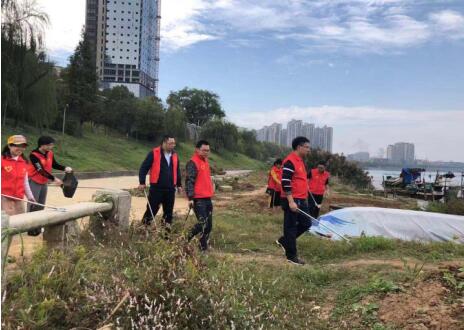 正午一點(diǎn),黨員們顧不上午休,身著志愿服,來到湘江的珠江橋撿拾垃圾。有的人一手拿火鉗,一手提垃圾袋;有的人分工合作,配合默契。道路上,草地里,河水邊,黨員的身影隨處可見。他們展開“地毯式”搜撿,不放過一個(gè)塑料袋,一個(gè)煙蒂,一張廢紙。一個(gè)個(gè)干勁十足、爭先恐后。兩小時(shí)的辛苦努力,黨員們拾得十幾袋垃圾,“收獲”頗豐,湘江的面貌煥然一新。