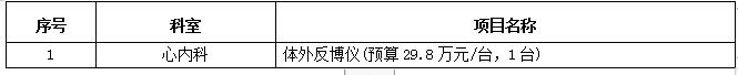 因醫(yī)院發(fā)展的需要,我院擬于近期對(duì)一批醫(yī)療設(shè)備進(jìn)行院內(nèi)招標(biāo)采購(gòu),歡迎具備條件的公司報(bào)名參加。